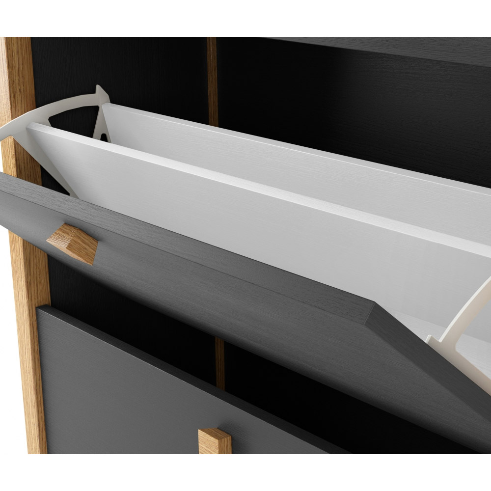 Kingakapp tumehallist insenerpuidust, mille käepidemed ja nurgad on valmistatud kase täispuidust. Kapi maksimaalne kandevõime on 20 kg ja mahutavus umbes 10 kingapaari. Kõrgus põrandast on 5 cm.