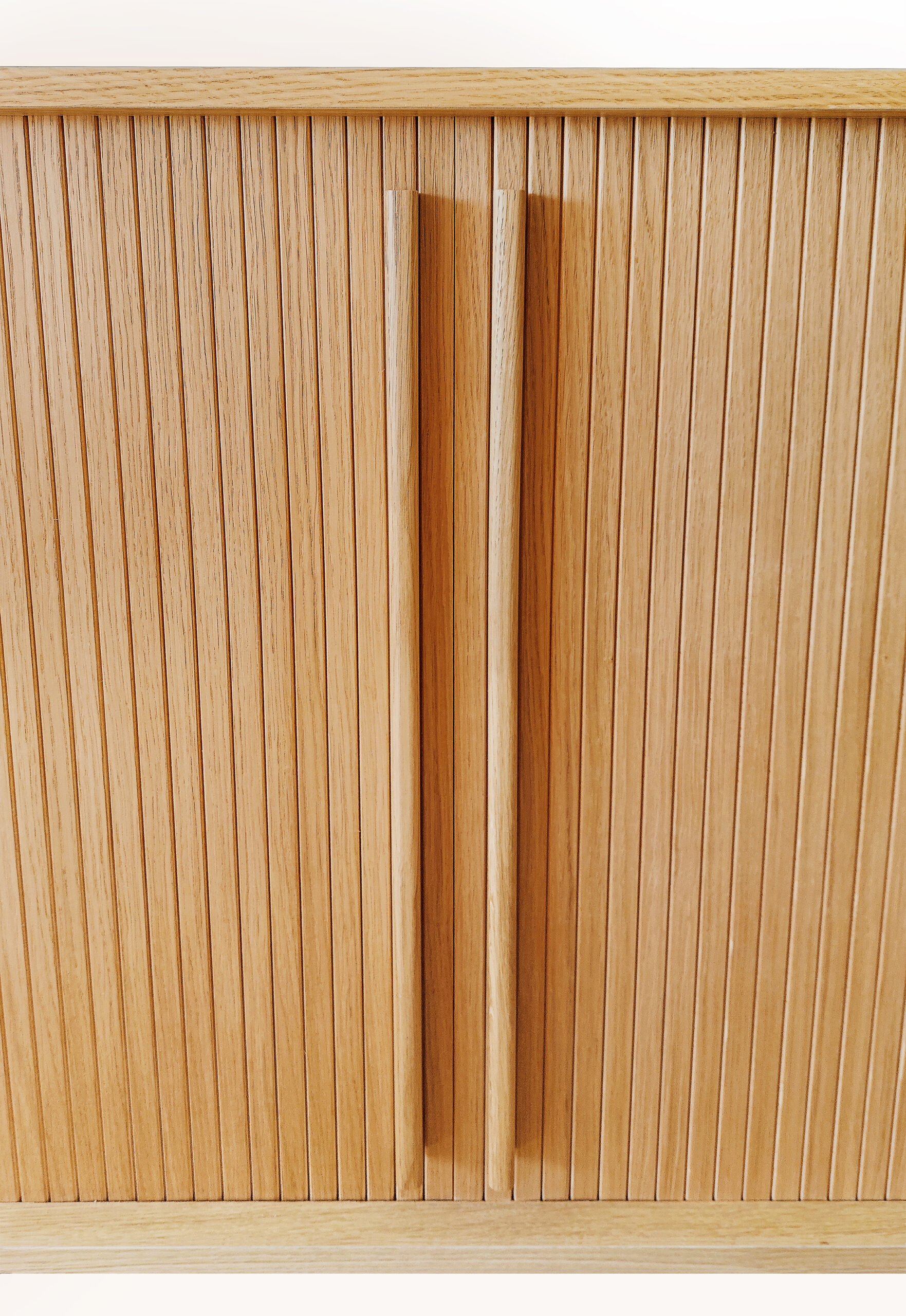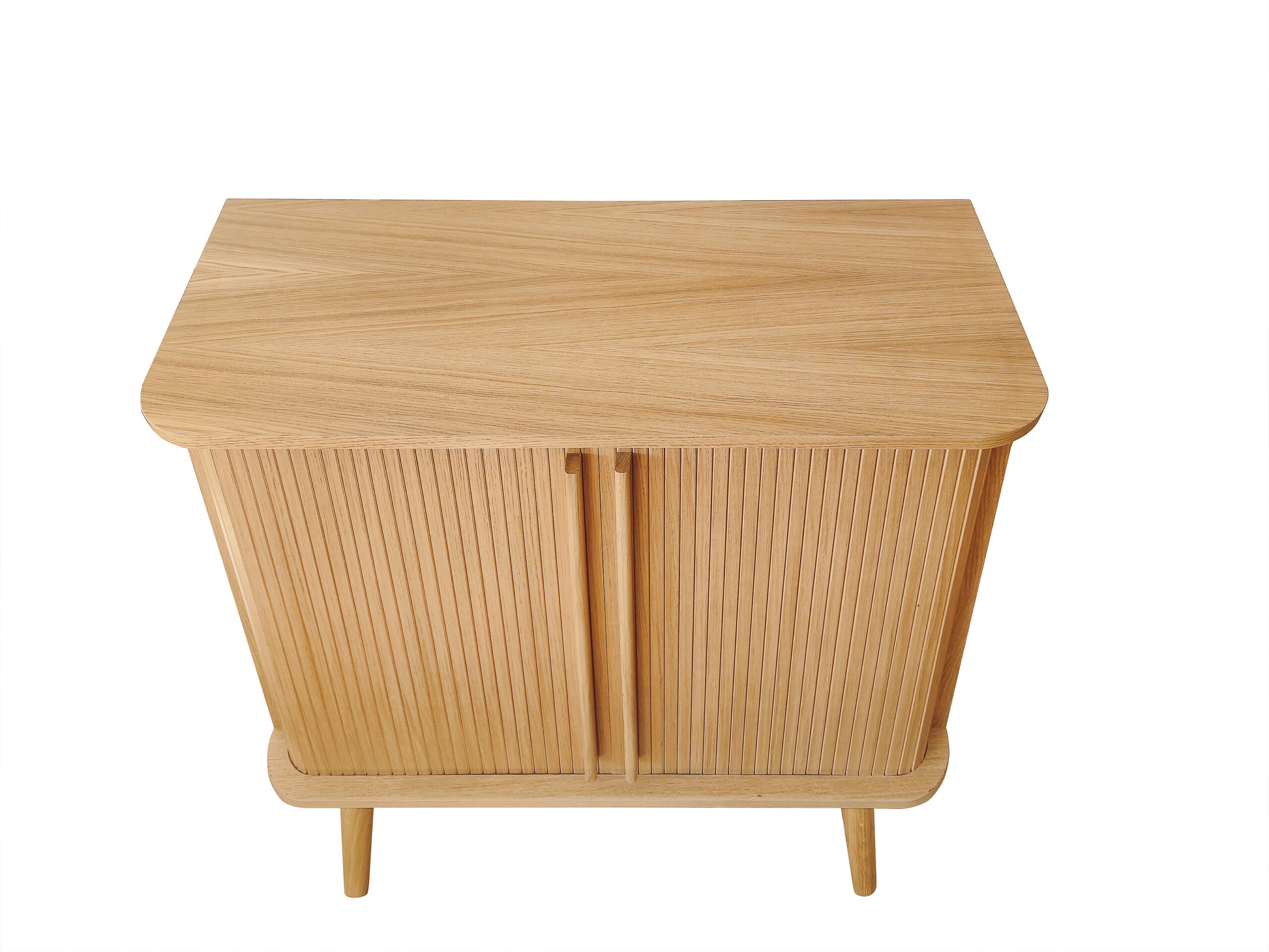 Rove Tambour on modernne ja elegantne kapp, kus funktsionaalsus kohtub ajatu disainiga. Korpus on kaetud naturaalse tammespooniga, jalad ja käepidemed on valmistatud täistammest, lisades mööblile soojust ja vastupidavust.