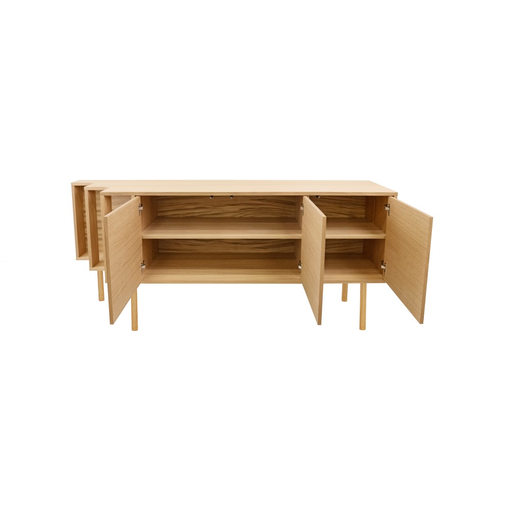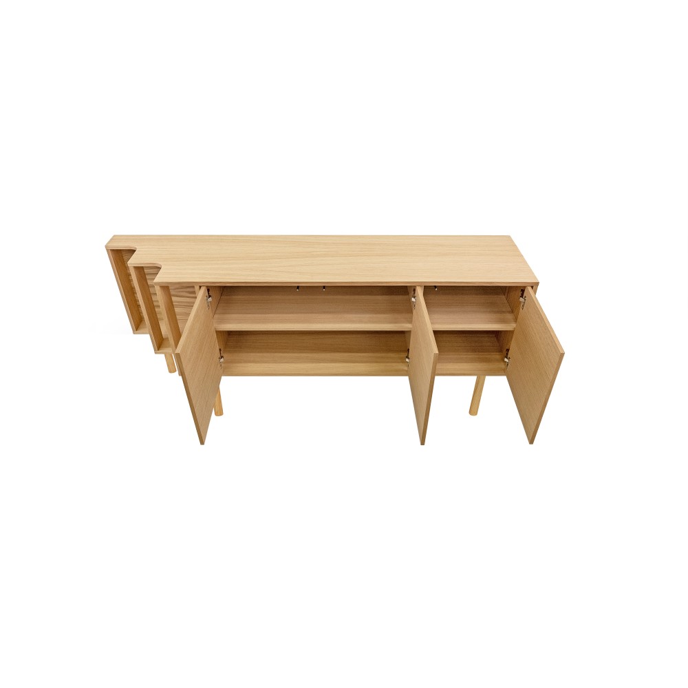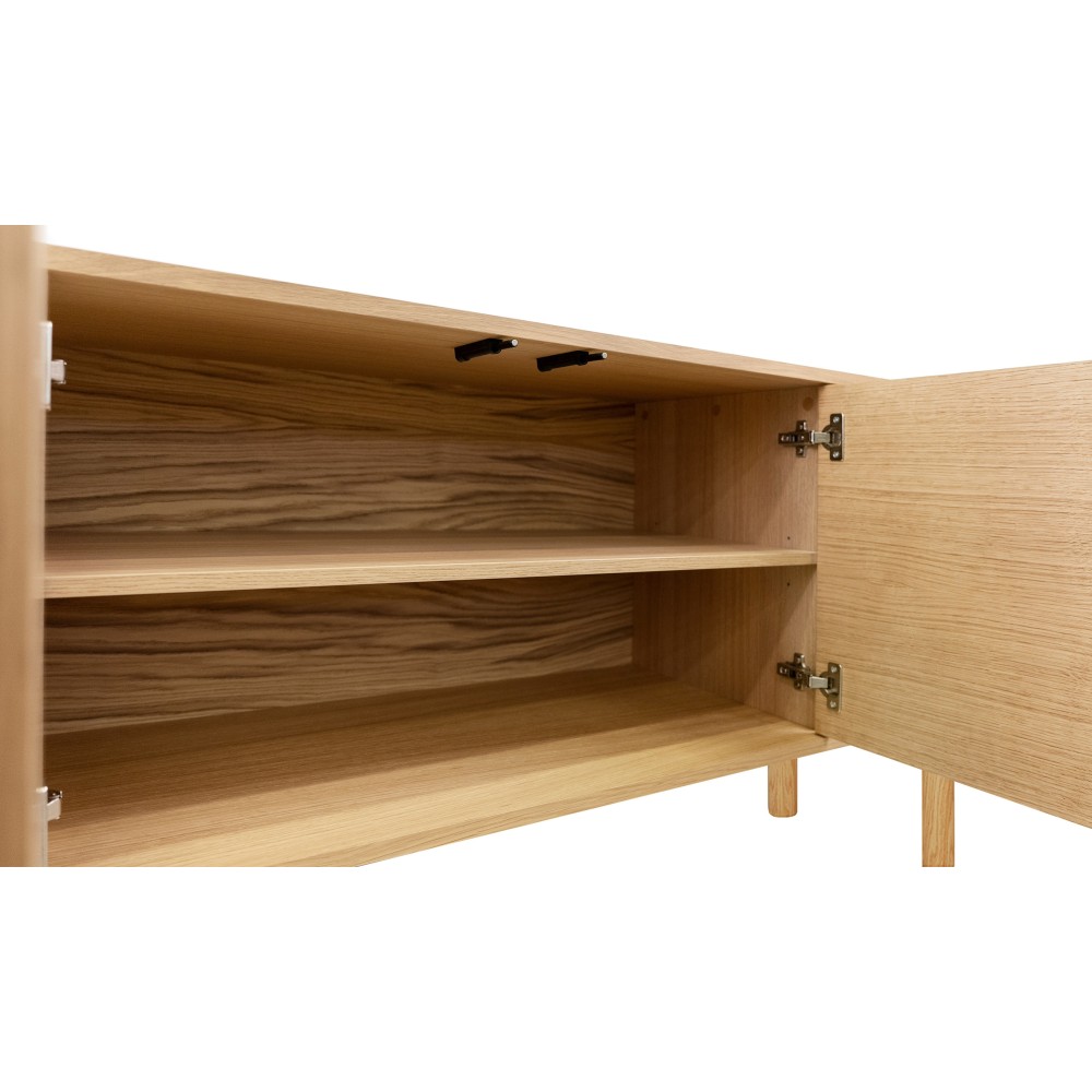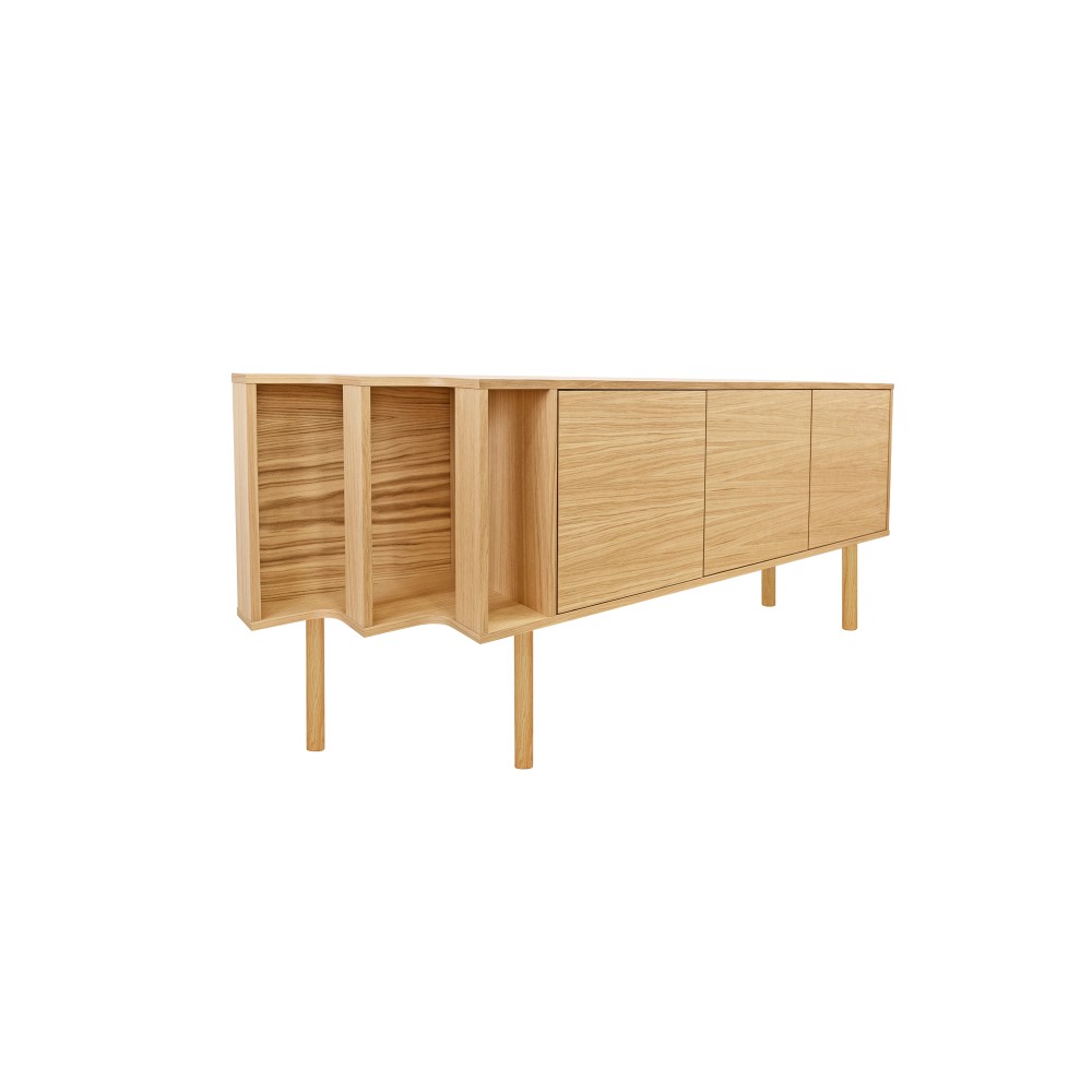 Stiilne ja praktiline tammespoonist kummut, millel on kolm reguleeritavat ust ning nende taga riiul, mida saab kohandada vastavalt vajadusele (mõõdud: 44 x 39 mm, L x S). Kummut seisab vastupidavatel tammepuidust jalgadel, mille kõrgus on 150 mm – tagades nii stabiilsuse kui ka elegantse välimuse.