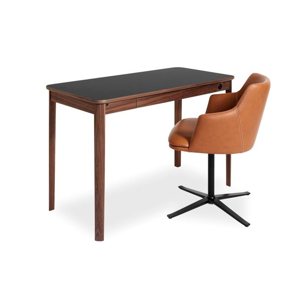 Töölaual on eelinstallitud USB-pluginad, mahukas sahtel ning kinnituspaelad juhtmete ja kaablite jaoks.