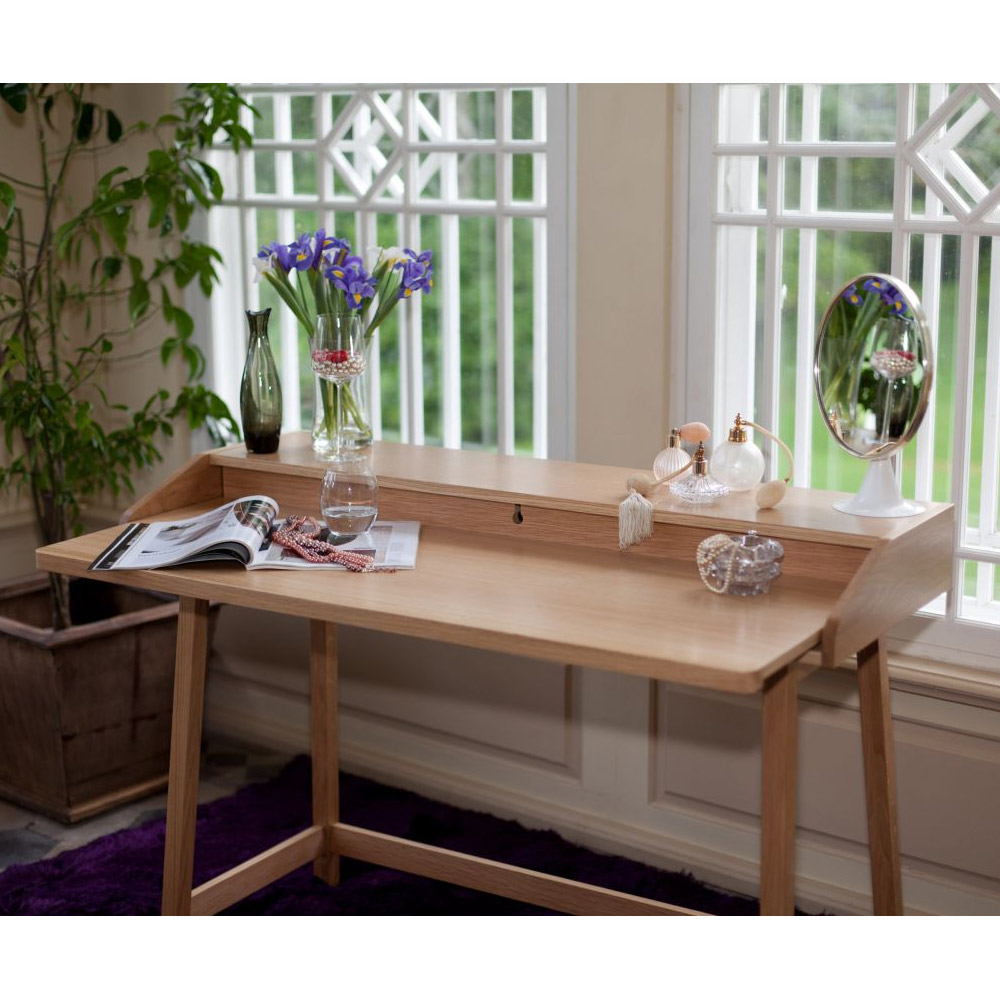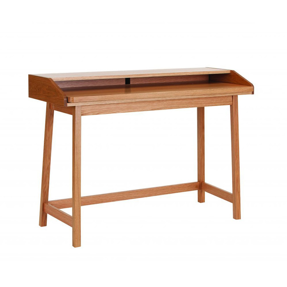 See kompaktne ja õhuke kirjutuslaud säästab ruumi, kuid pakub funktsionaalset tööala. Ideaalne, kui ruumi on vähe. Kui väljatõmmatav tööpind on avatud, suureneb toote sügavus kuni 69 cm. Korpuse all on kaablite jaoks augud. Puhas ja minimalistlik disain.