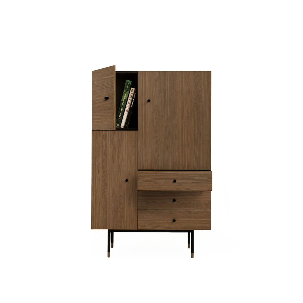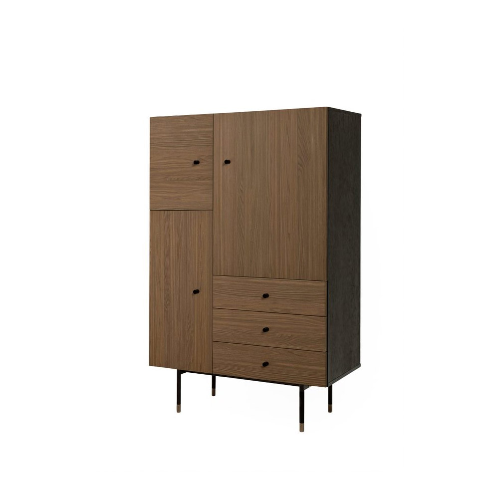Välimine korpus must melamiin, esikülg pähklispoon ja jalad must metall.