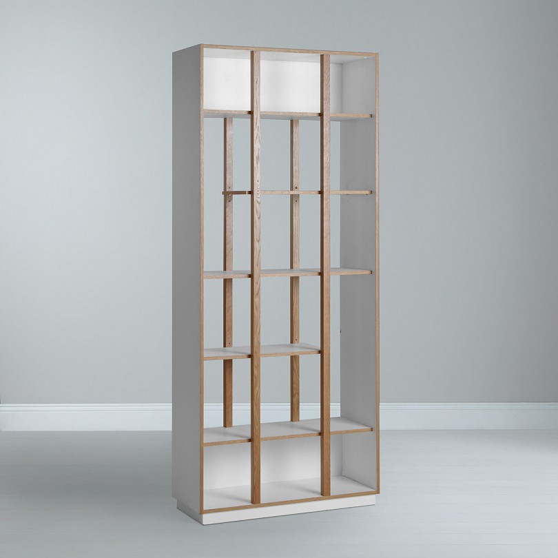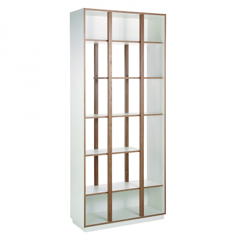 Woodmani Newbury raamaturiiul on paljude riiulitega, mahutades palju. Newbury sobib hästi ka ruumi eraldajaks.