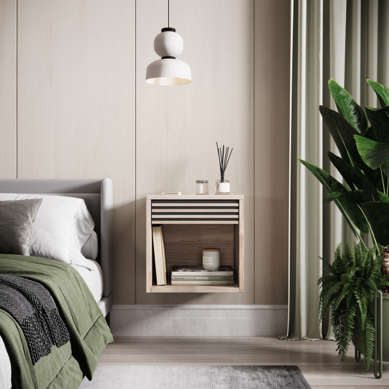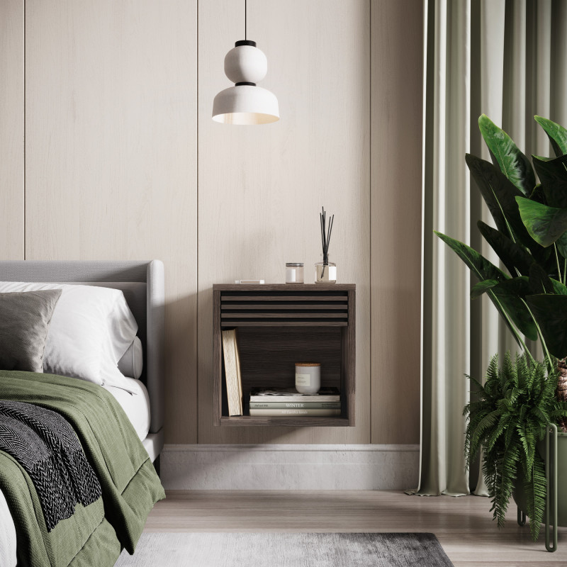 CASØ Broholm öökapp on nutikas ja kompaktne, mille saab mugavalt seinale kinnitada, säästes ruumi ja lisades magamistuppa modernset stiili.