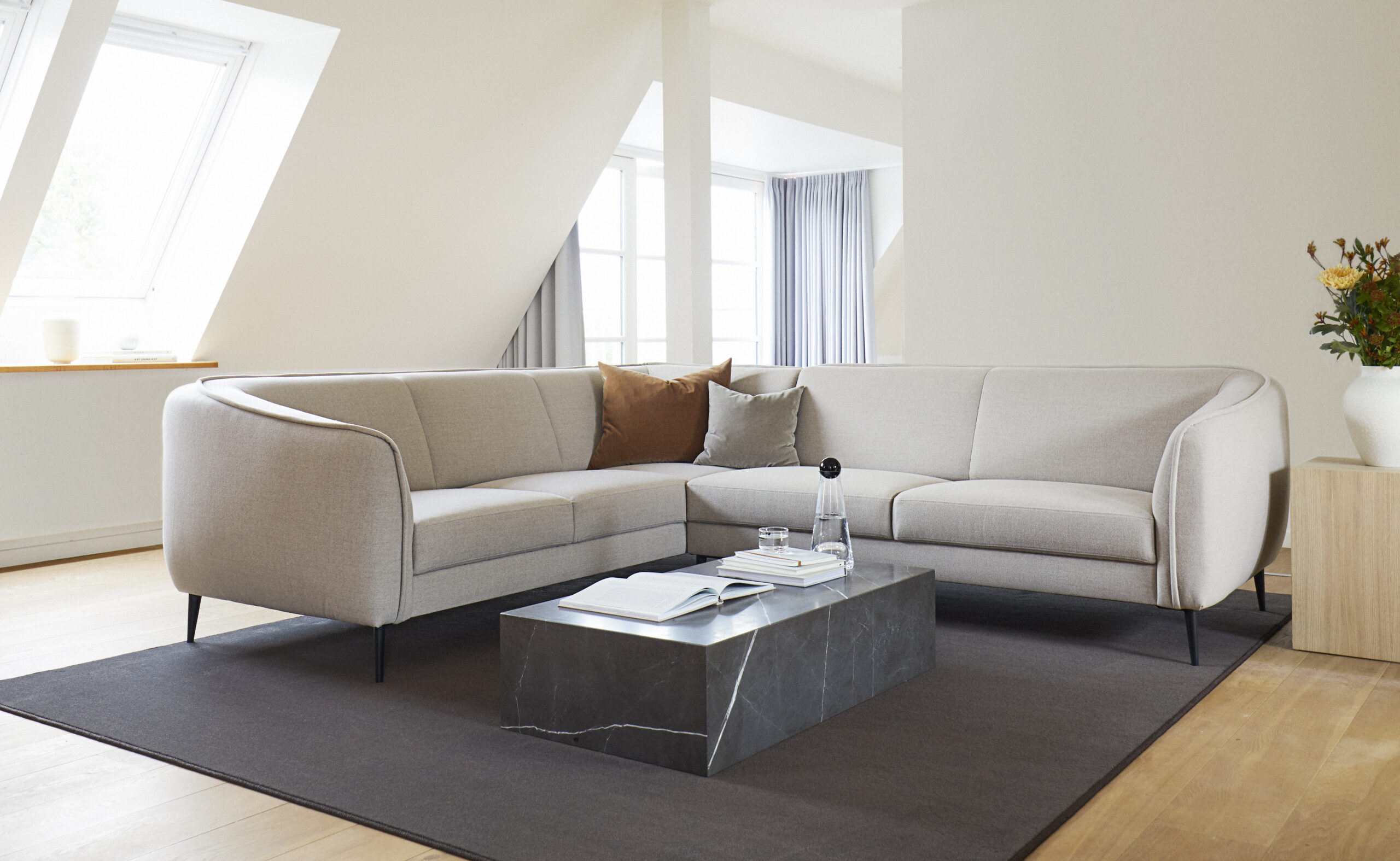Puhtad ja täpsed jooned loovad diivani, mis mõjub ühtaegu ajatu ja kaasaegsena. Kergelt tõstetud vorm lisab modernset elegantsi ning hoolikalt läbimõeldud proportsioonid tagavad mugavuse ilma liigse raskuseta.