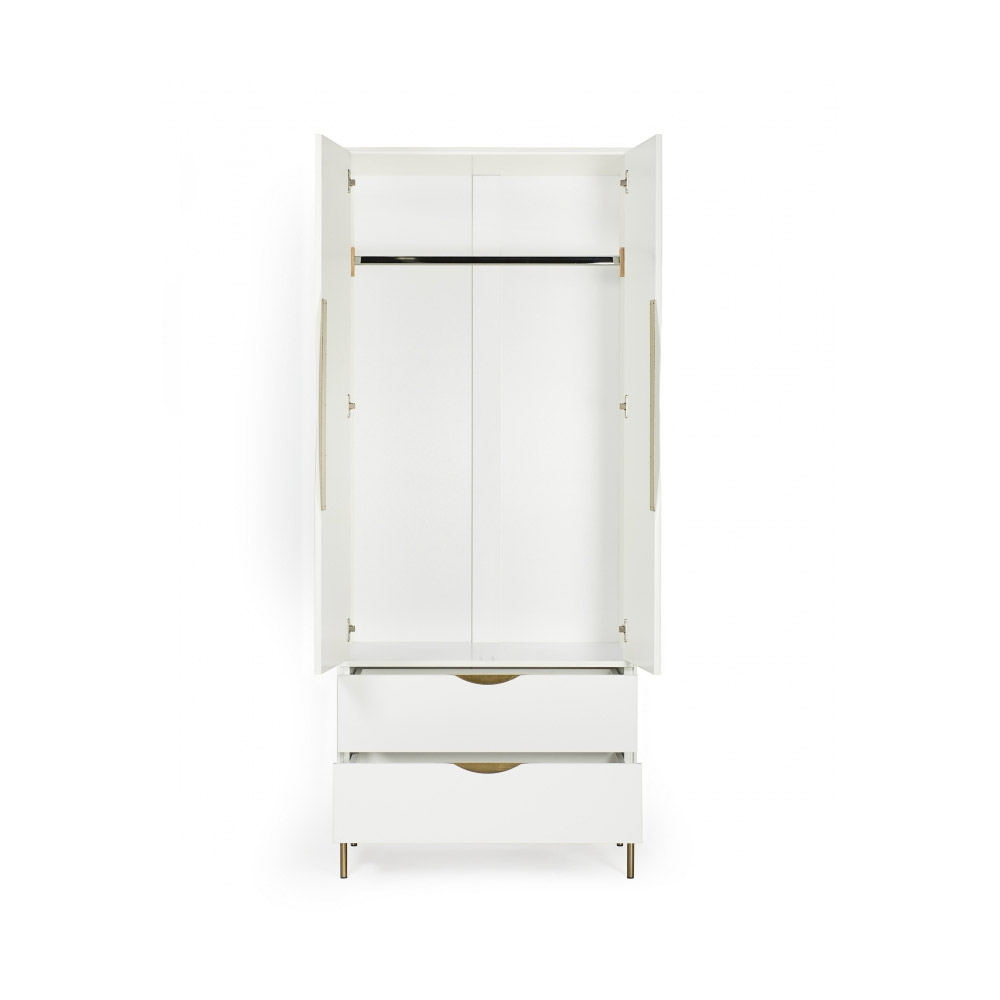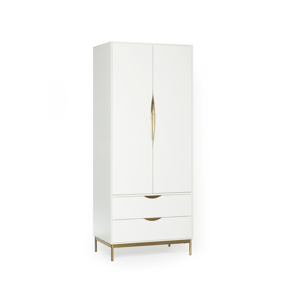 Kobe riidekapp ilmestab oma atraktiivse stiiliga nii kodu kui kontorit. Kapil on mahukas osa üleriiete jaoks ja kaks sahtlit allosas. Sahtlite mõõdud: 71 x 11 x 46 cm. Jalgade kõrgus 15cm. Kõrgus uste taga 134 cm. Messingist pulbervärviga kaetud terasest käepidemed ja jalad.