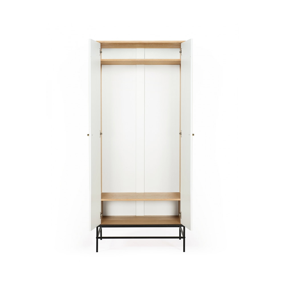 LIA riidekapp on tõeline pilgupüüdja. Kapi korpus on viimistletud tamme spooniga. Uste taga on riidepuu ja kaks riiulit. Ülemise riiuli kõrgus on 14,5 cm ja alumise riiuli kõrgus on 21,1 cm.