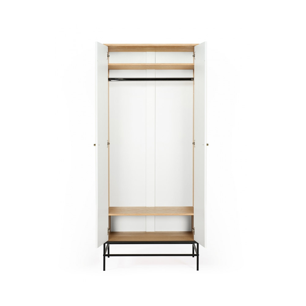 Kapil on tamme spoonist korpus. Uste taga on riidepuu ja riiul, mille kõrgus on 14,5 cm. Põhjas on üks riiul kõrgusega 21,1 cm. Jalgade kõrgus on 25 cm. Uksed ja sahtel on pehmelt sulguvad. Kapi käepidemed on valmistatud messingist.