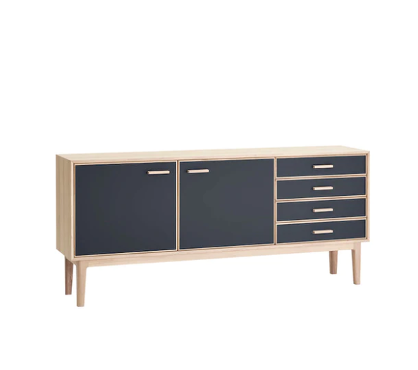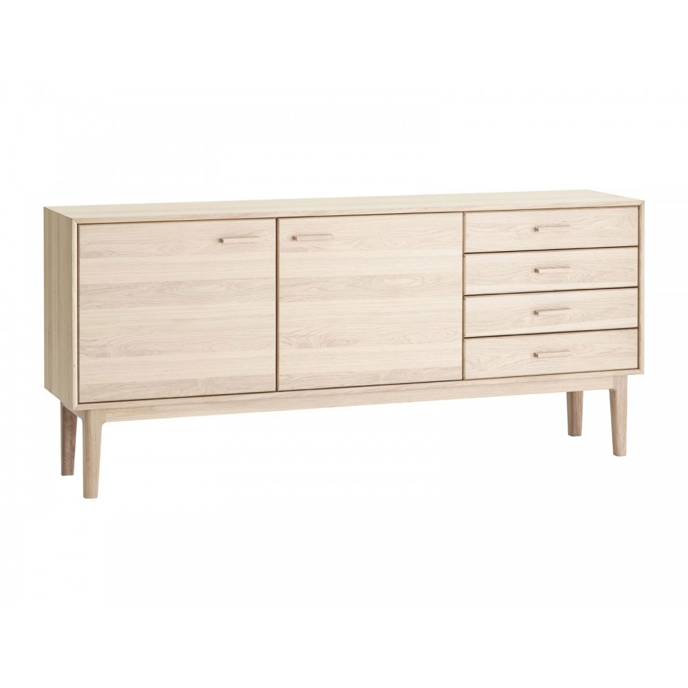 Caso Taani disainkummut, mis sobib hästi elutuppa. Kummutil on 2 ust ja 4 sahtlit, mis kõik sulguvad vaikselt (soft-close). Uste taga on 1 reguleeritav täispuidust riiul.