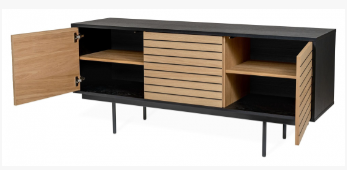 Materjal: Tammespooniga puitlaastplaat peitsitud mustaks, kaetud mati PU lakiga.