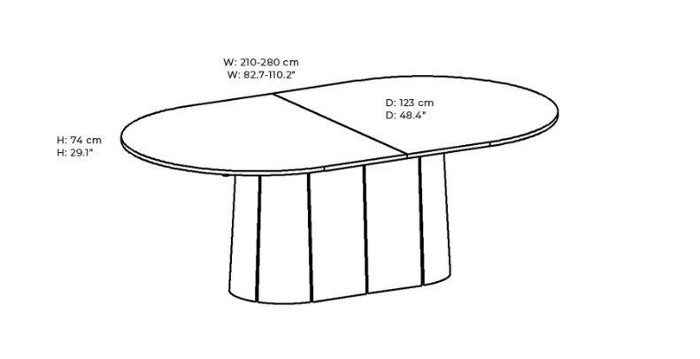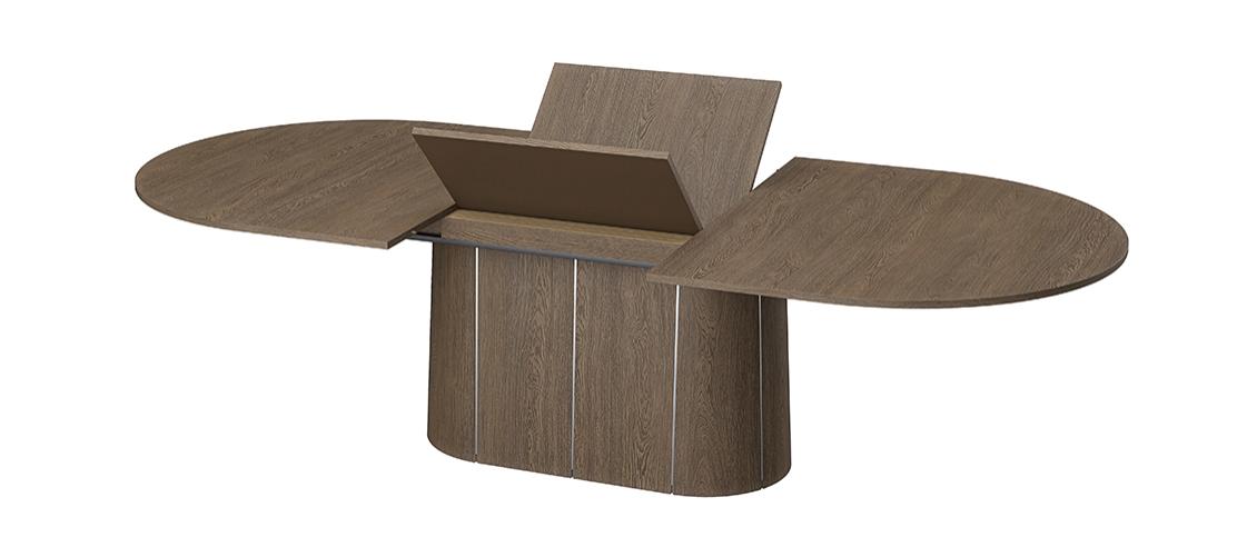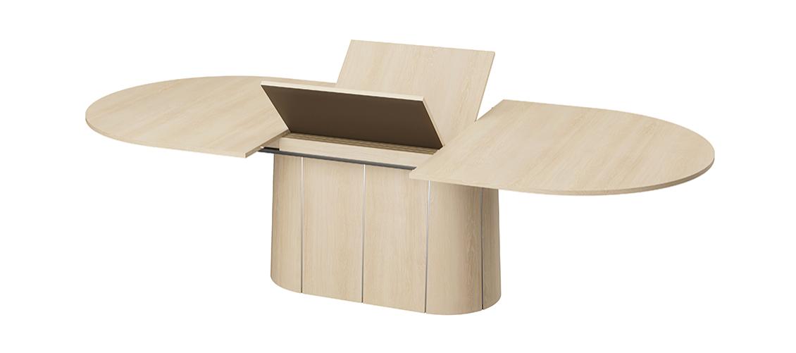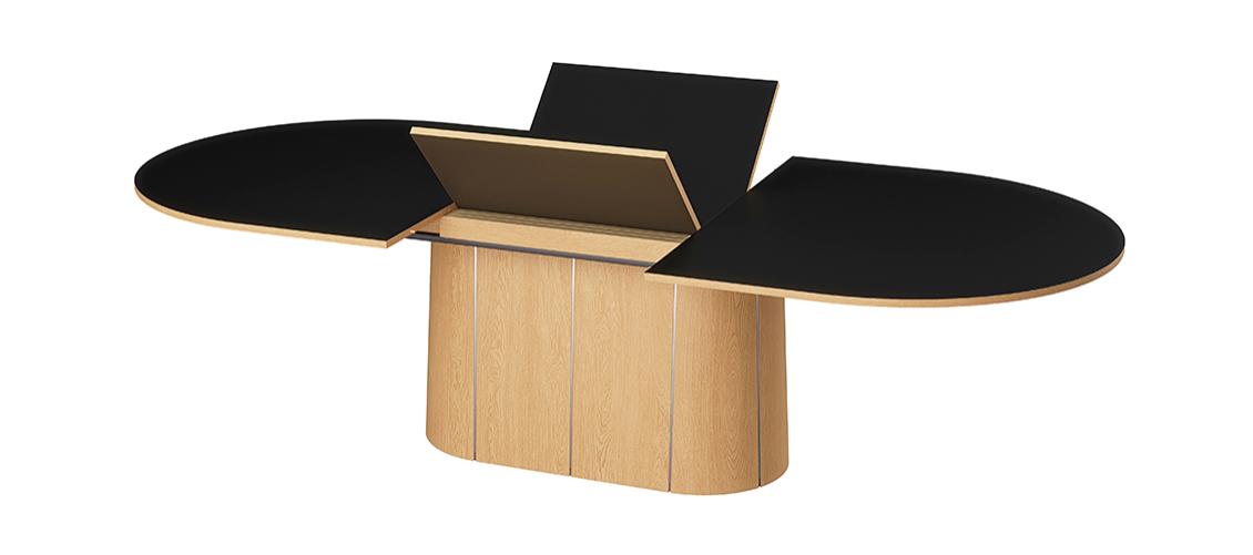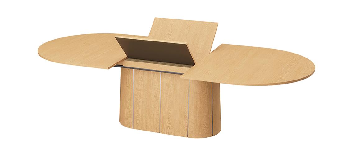 SM115 on lai ovaalne laud, mille keskosas paikneb elegantne soklilaadne jalg ning millel on patenteeritud sünkroonne pikendusmehhanism. Lauaplaat on keskelt jaotatud kaheks ning seda saab sujuvalt laiali tõmmata – peidetud pikendusplaadid tõusevad automaatselt laua sisemusest üles ja avanevad. Nii saab laua pikkust suurendada 210 cm-lt kuni 280 cm-ni, pakkudes ruumi 2–4 lisakülalisele ja mahutades kokku kuni 12 inimest.