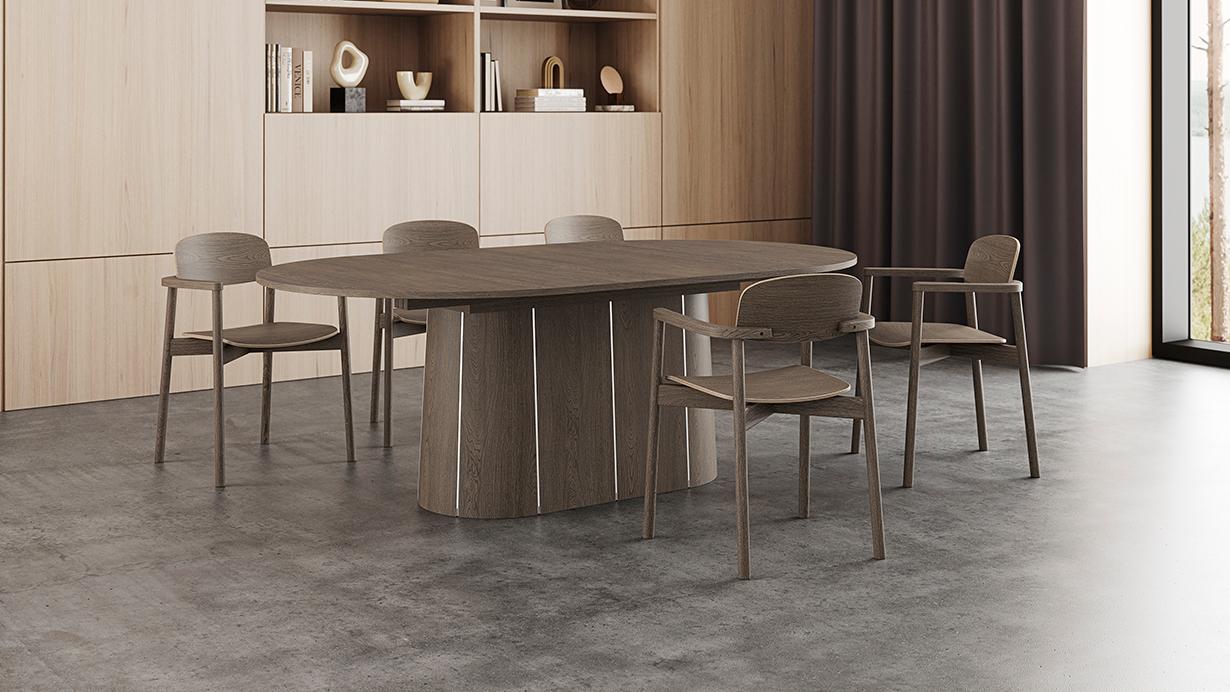 Skovby on tuntud oma Taani käsitöömeistrite ajatu disaini ja nutikate lahenduste poolest – ning uus pikendatav söögilaud #115 pole erand. Disainer Per Haansbæki loodud laud on inspireeritud ovaalsest, ümarate nurkadega ristkülikukujulisest siluetist, mis ühendab endas esteetika ja praktilisuse.