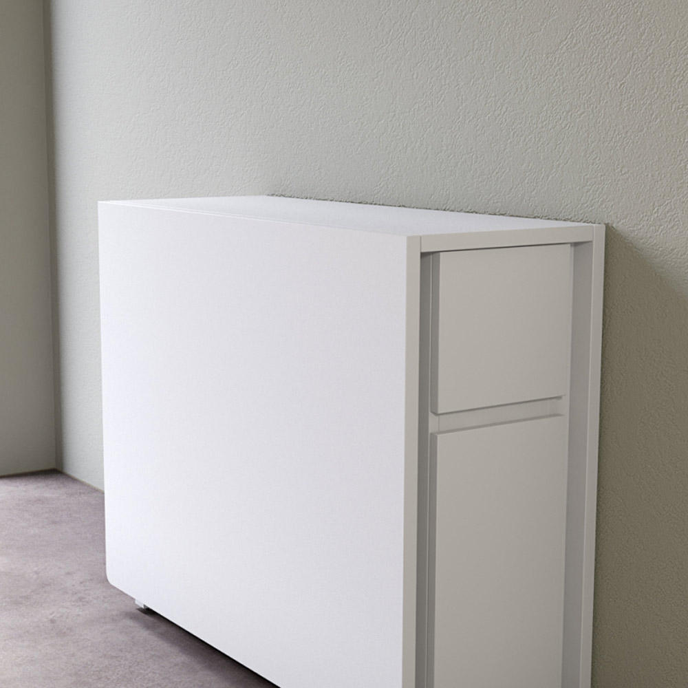 Kokku klapitav huvitava disainiga söögilaud Kungla, mis rabab oma funktsionaalsusega. Lauaplaadi tugijalad on valmistatud kasest. Laual on üks sahtel (13,9 / 33,4 / 11,4 cm). Selle all on kapp (19,6 / 41 / 69 cm). Kokkupanduna on laua mõõtmed 90 x 35 x 75 cm. Avatud laua mõõtmed: 90 x 170 x 75 cm. Lauda saab mugavalt liigutada rataste abil.