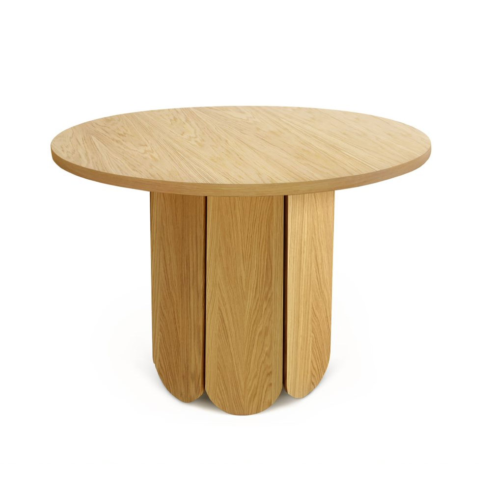 Lauaplaat on valmistatud PLP25, mis on kaetud tamme spooniga. Lauajalg on aga valmistatud MDF plaadist, mis on kaetud tamme spooniga. Laud lakitud matt lakiga.