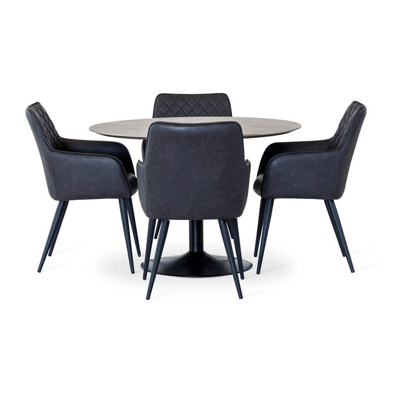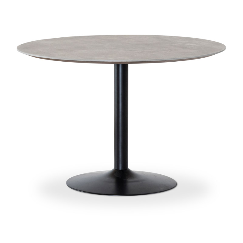 Ümar söögilaud Miles, mille pealmine osa on valmistatud vastupidavast laminaadist ja laua jalg kvaliteetsest metallist.