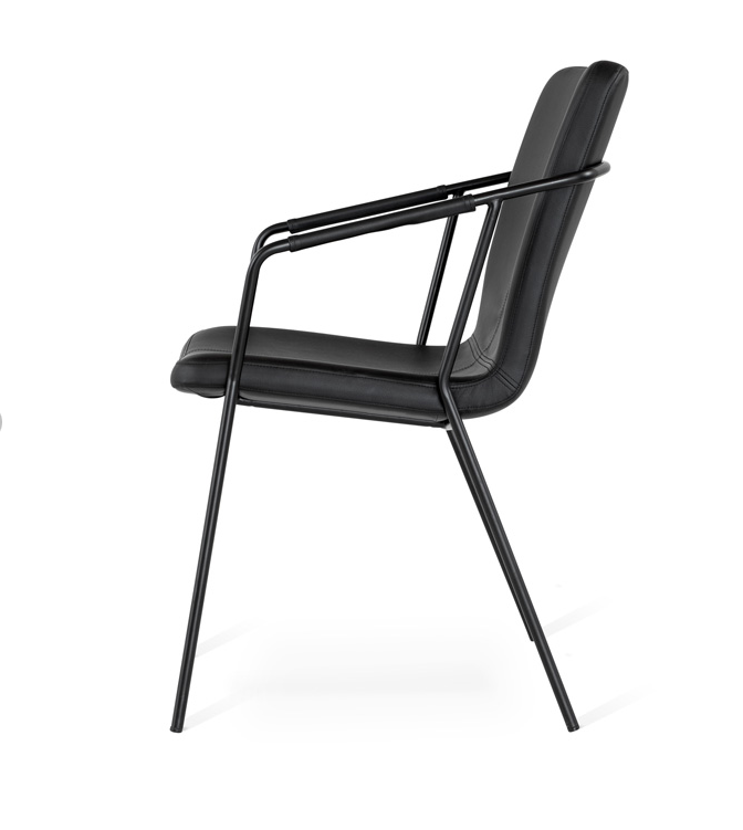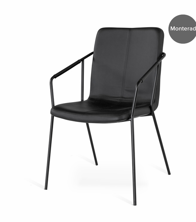 Puhta ja põhjamaise stiiliga söögitool Evo, musta Pu kattega ja pulbervärvitud mustast metallist raam.