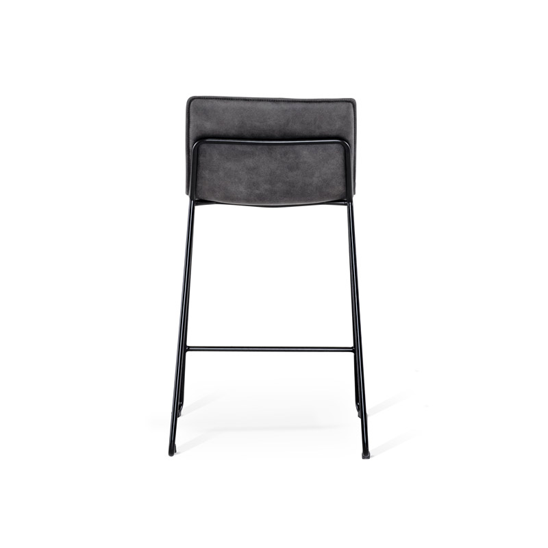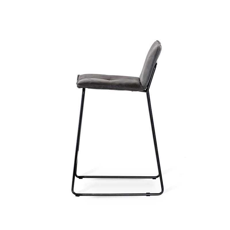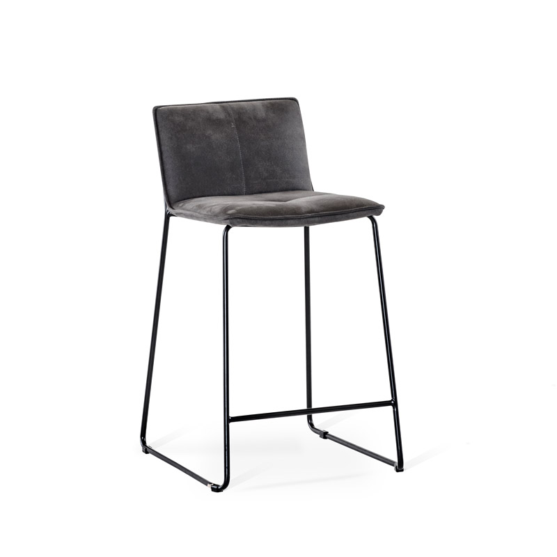 Baaritool mikrokiust istmega. Toolil on musta tooni metallist jalad.