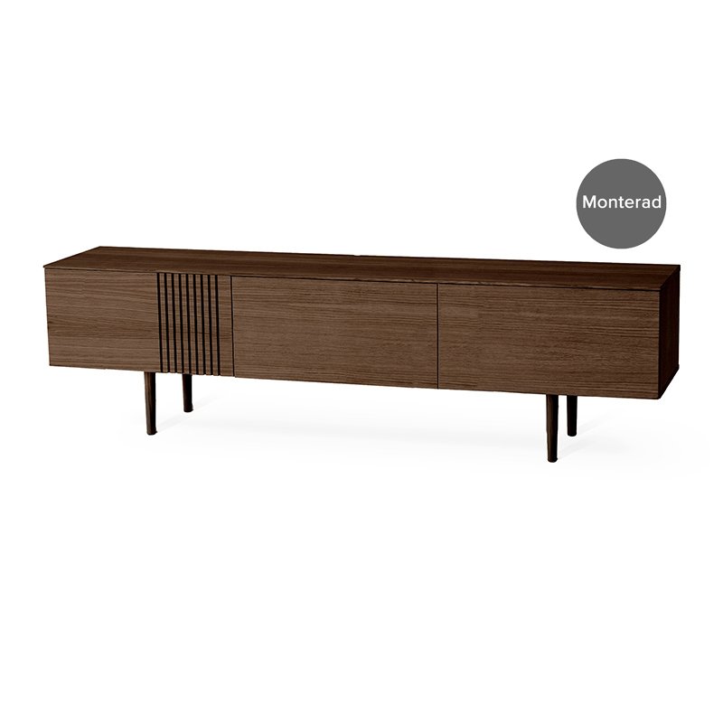 TV kapp kolme uksega ja puidust riiulid. Kapi saab alternatiivina ka seinale kinnitada.