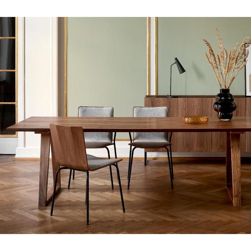 Skovby söögitool #801 on minimalistlik ja iseloomulik, millel on omapärane spoonikoor, mis on kombineeritud terasjalgadega kas mustast terasest või kroomist.