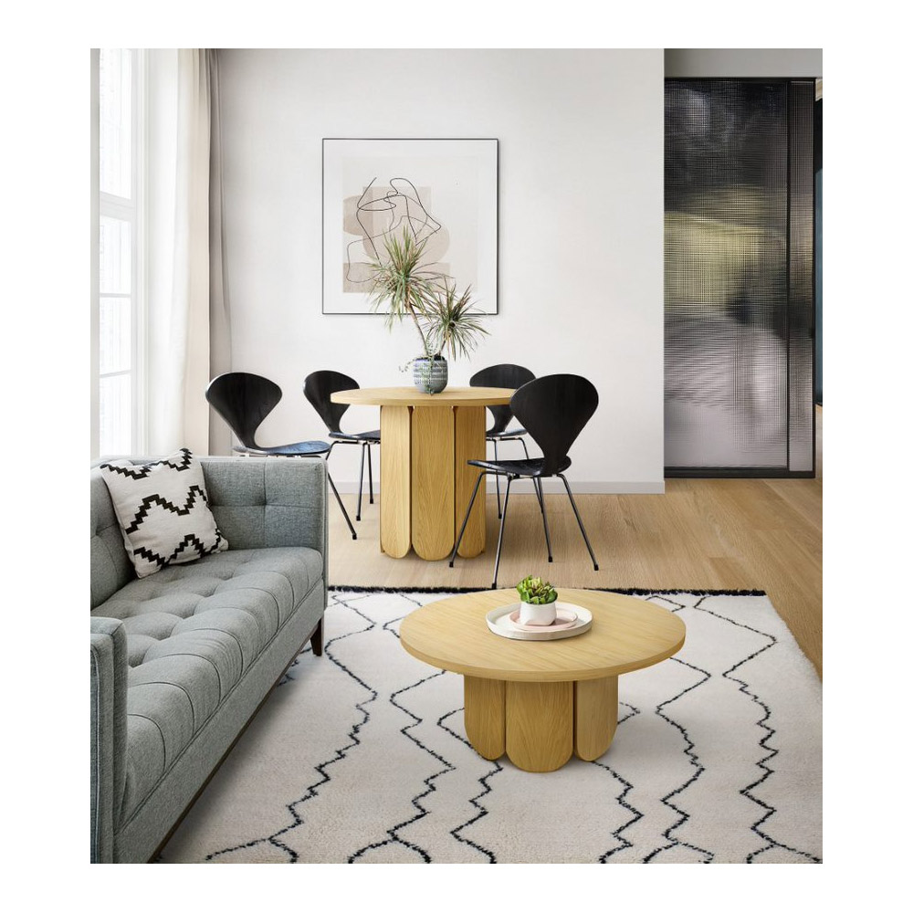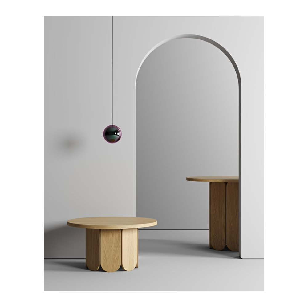 Armas silmapaistev diivanilaud Soft 78 cm läbimõõduga. Lauaplaat on valmistatud PLP28, mis on kaetud tamme spooniga. Lauajalg on aga valmistatud MDF plaadist, mis on kaetud tamme spooniga. Lisaks on laud lakitud matt lakiga.